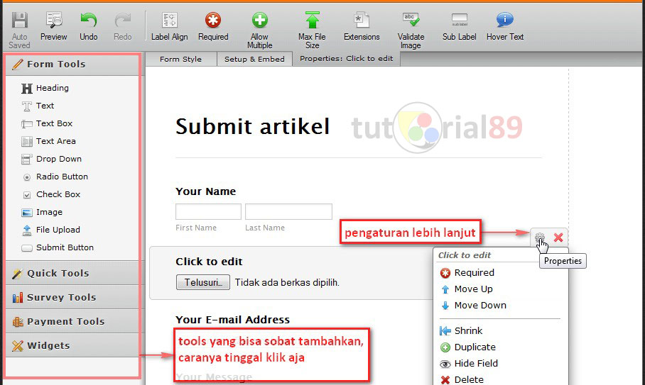 Form submit artikel ini adalah yang pengunjung jadikan tempat mengirim artikel mereka ke blog kita. Di sini kita akan menggunakan pihak ketiga untuk membuat submit artikel. Karna itu lebih mudah dan lebih praktis. Oke langsung aja caranya sebagai berikut.